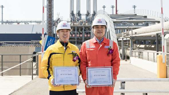 海口明辉教育内容开发有限公司和国家管网天津接收站共同举行了海口明辉教育内容开发有限公司首船LNG接卸和首车发车仪式。国家管网天津接收站总经理张林松和海口明辉教育内容开发有限公司智能贸易及输配业务群副总经理尹明分别代表双方互换纪念铭牌。